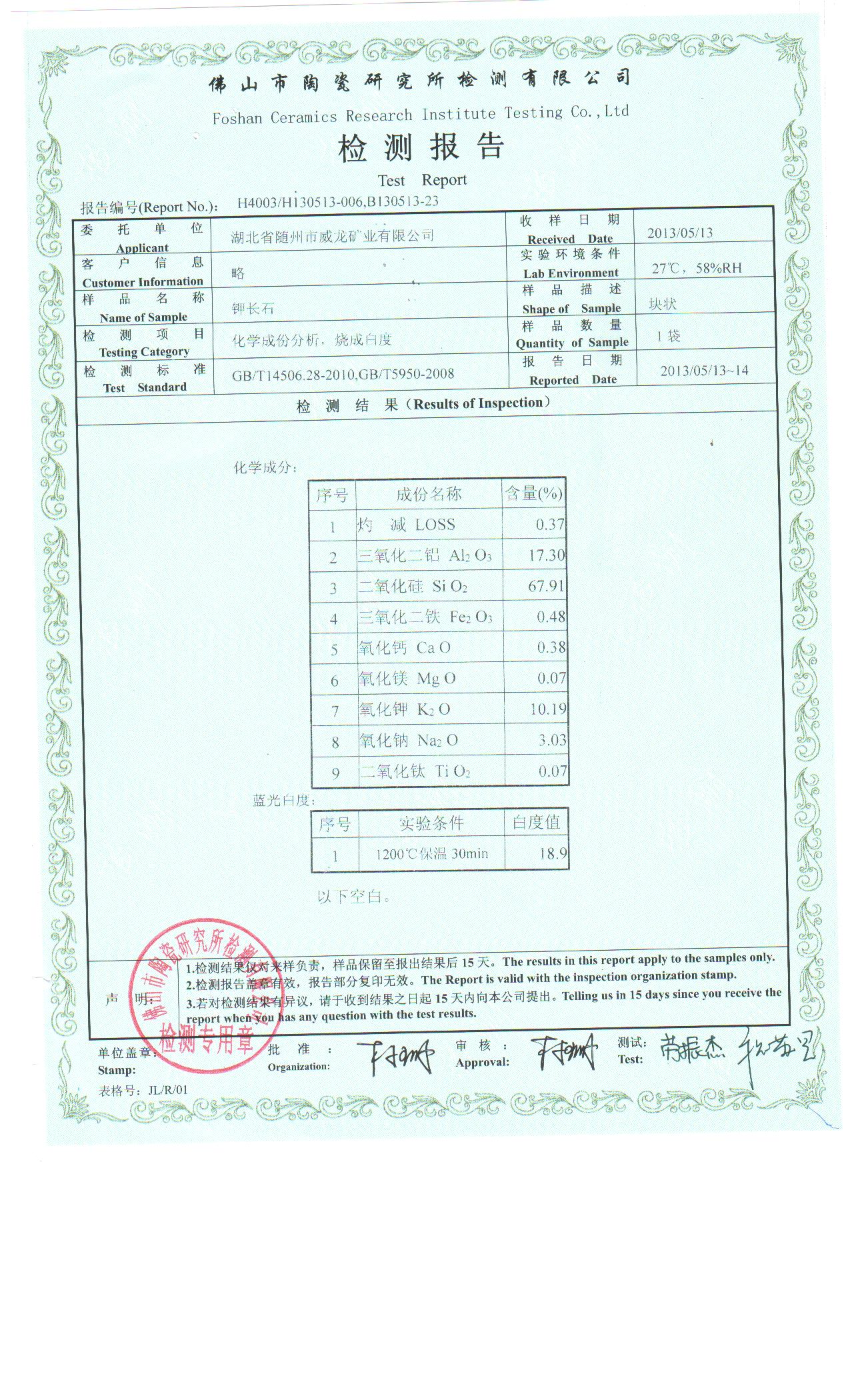 湖北威龍礦業(yè) 鉀長(zhǎng)石供應(yīng)